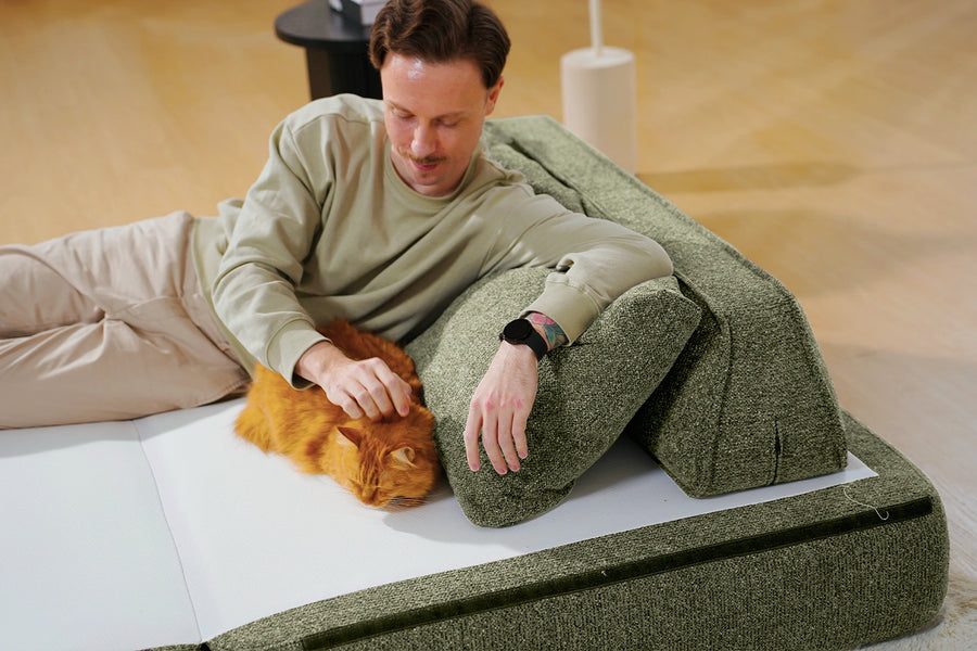 Cushie Modular Sofa Bed transforms from a stylish seat to a cozy bed in seconds—just flip and snooze. Unlike traditional sleeper sofas with noisy metal frames and complex pull-outs, Cushie keeps it simple and silent.