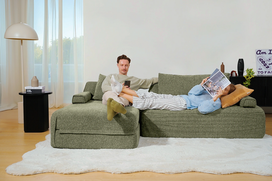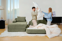 Cushie Modular Sofa Bed transforms from a stylish seat to a cozy bed in seconds—just flip and snooze. Unlike traditional sleeper sofas with noisy metal frames and complex pull-outs, Cushie keeps it simple and silent.