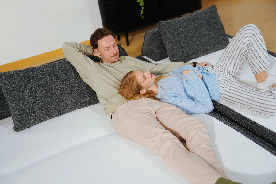Extremely. Cushie Modular Sofa Bed uses a built-in mattress system made from pocket springs + memory foam—the same materials found in premium beds. No metal bars, no paper-thin cushions—just true, mattress-grade sleep comfort.