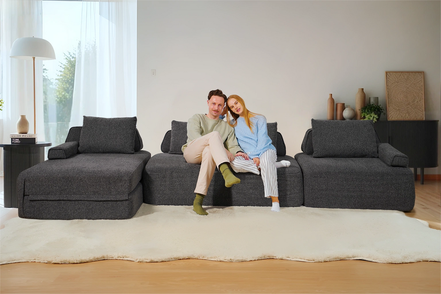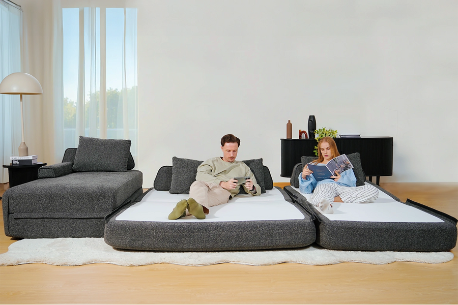 Cushie Modular Sofa Bed transforms from a stylish seat to a cozy bed in seconds—just flip and snooze. Unlike traditional sleeper sofas with noisy metal frames and complex pull-outs, Cushie keeps it simple and silent.