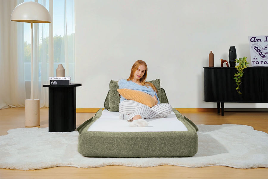 Cushie Modular Sofa Bed transforms from a stylish seat to a cozy bed in seconds—just flip and snooze. Unlike traditional sleeper sofas with noisy metal frames and complex pull-outs, Cushie keeps it simple and silent.