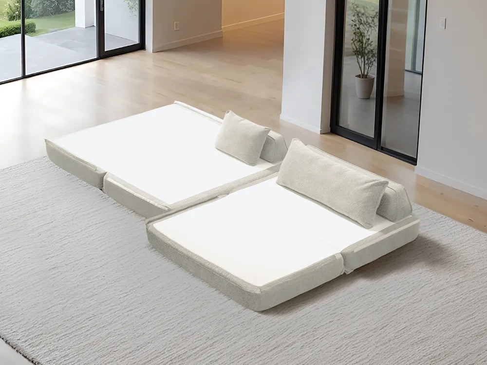 Cushie Modular Sofa Bed transforms from a stylish seat to a cozy bed in seconds—just flip and snooze. Unlike traditional sleeper sofas with noisy metal frames and complex pull-outs, Cushie keeps it simple and silent.