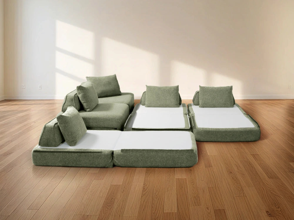 Cushie Modular Sofa Bed transforms from a stylish seat to a cozy bed in seconds—just flip and snooze. Unlike traditional sleeper sofas with noisy metal frames and complex pull-outs, Cushie keeps it simple and silent.