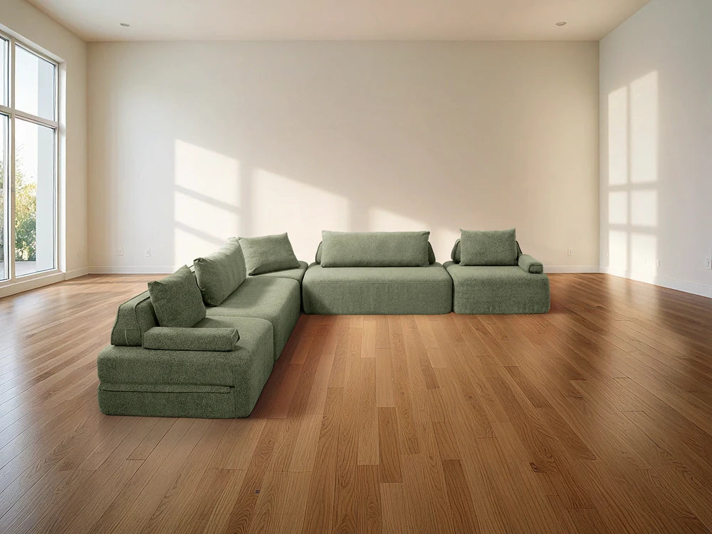Cushie Modular Sofa Bed transforms from a stylish seat to a cozy bed in seconds—just flip and snooze. Unlike traditional sleeper sofas with noisy metal frames and complex pull-outs, Cushie keeps it simple and silent.
