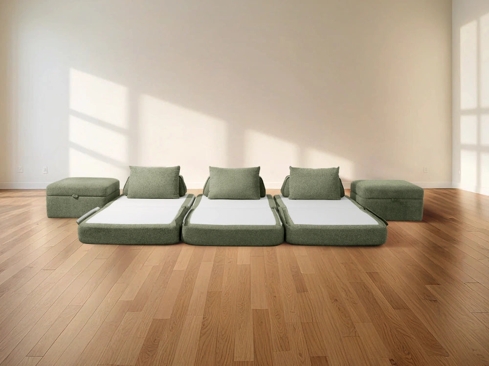 Cushie Modular Sofa Bed transforms from a stylish seat to a cozy bed in seconds—just flip and snooze. Unlike traditional sleeper sofas with noisy metal frames and complex pull-outs, Cushie keeps it simple and silent.