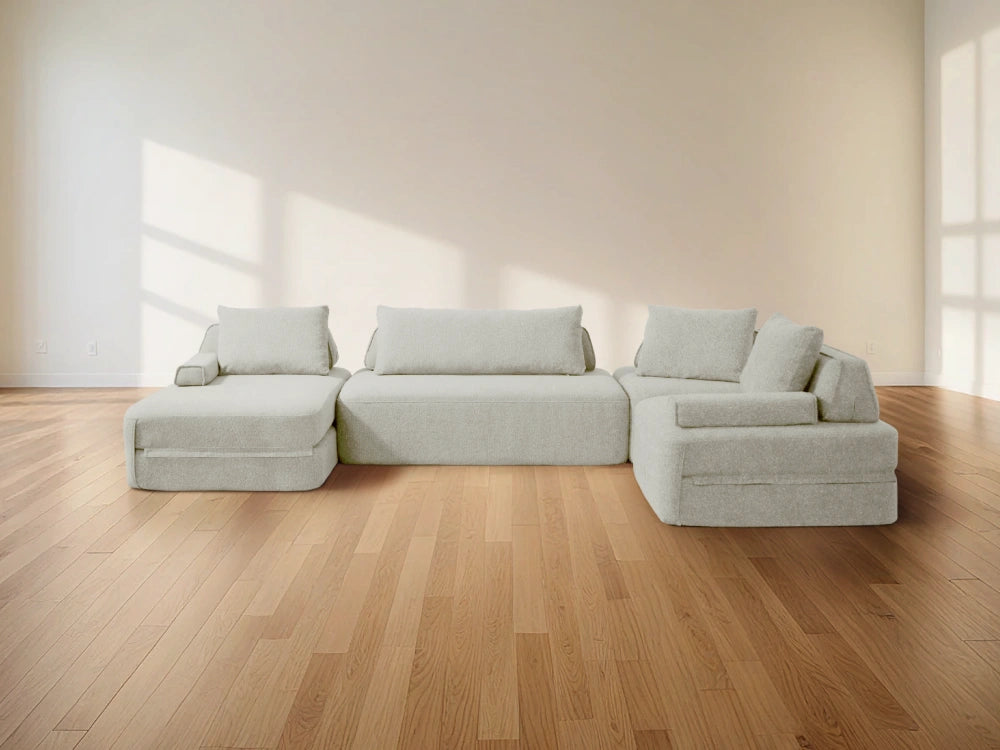Cushie Modular Sofa Bed transforms from a stylish seat to a cozy bed in seconds—just flip and snooze. Unlike traditional sleeper sofas with noisy metal frames and complex pull-outs, Cushie keeps it simple and silent.