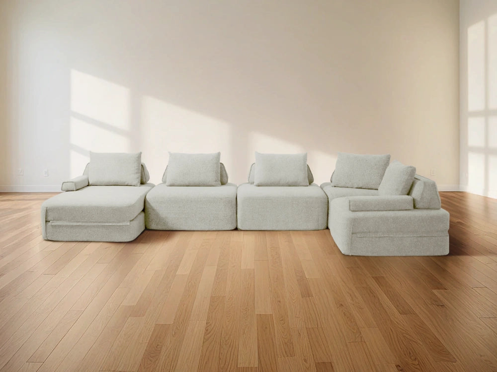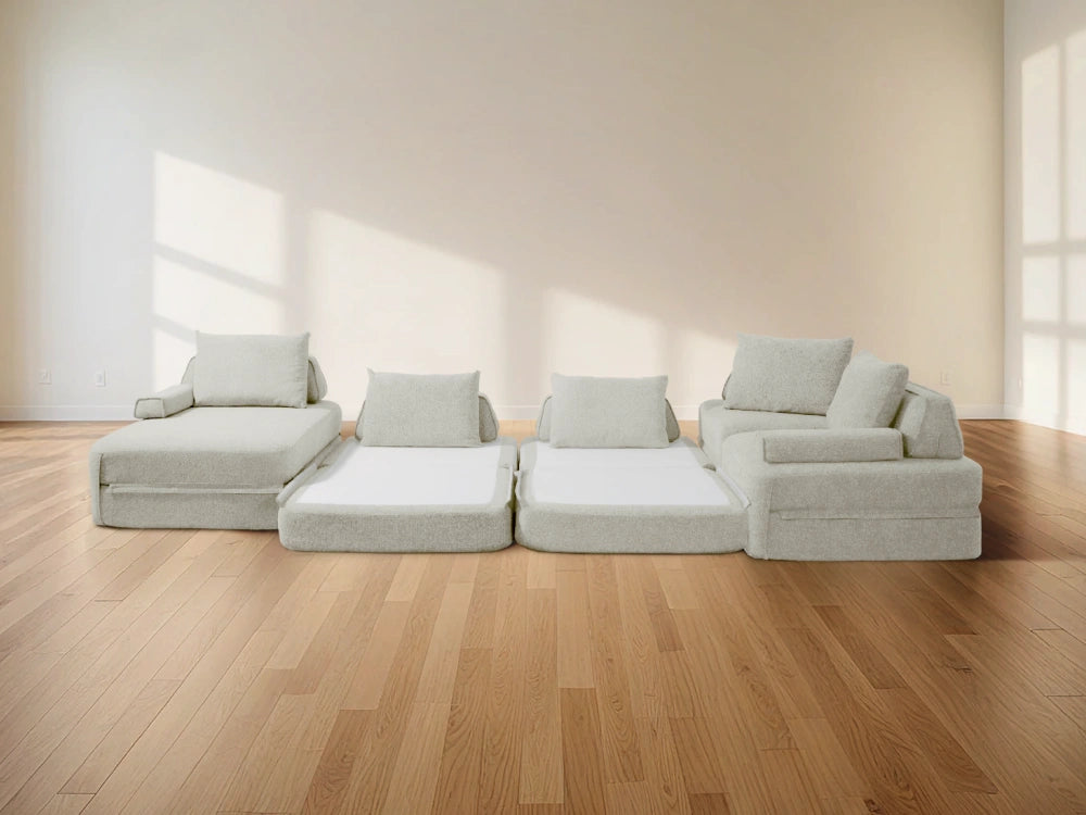Cushie Modular Sofa Bed transforms from a stylish seat to a cozy bed in seconds—just flip and snooze. Unlike traditional sleeper sofas with noisy metal frames and complex pull-outs, Cushie keeps it simple and silent.