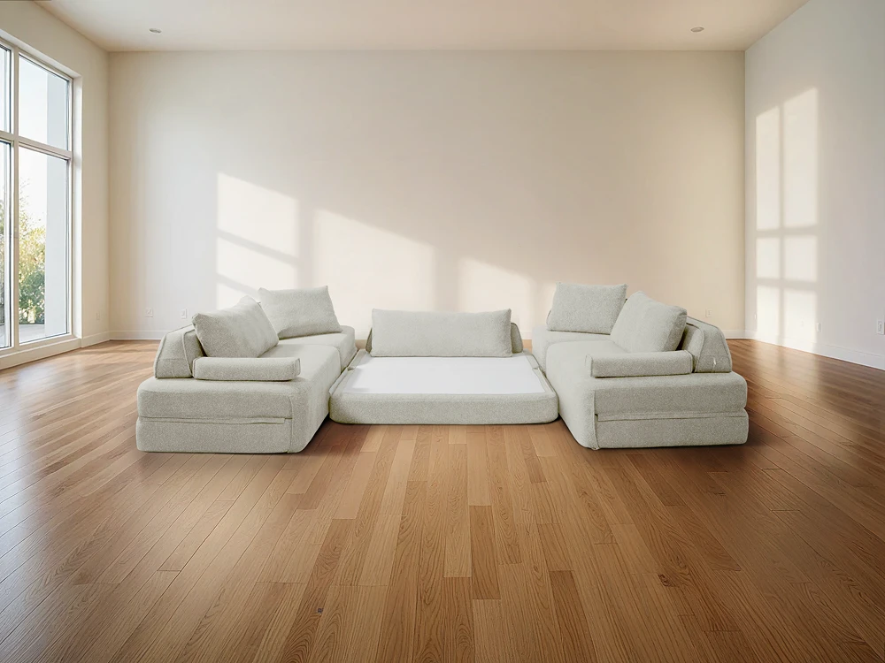 Cushie Modular Sofa Bed transforms from a stylish seat to a cozy bed in seconds—just flip and snooze. Unlike traditional sleeper sofas with noisy metal frames and complex pull-outs, Cushie keeps it simple and silent.