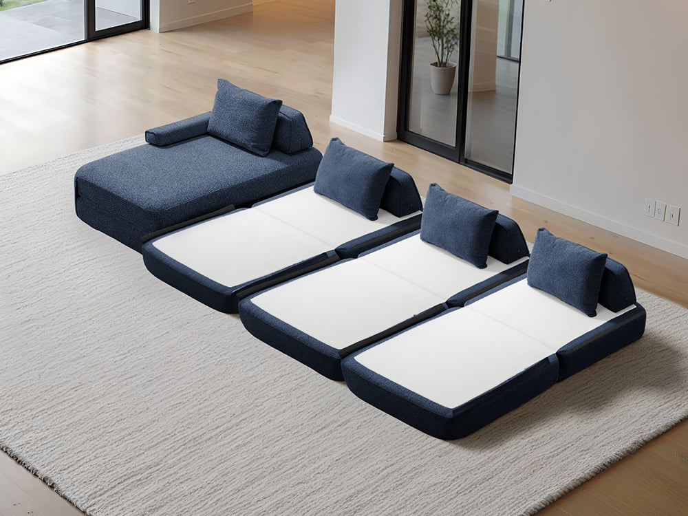 Cushie Modular Sofa Bed transforms from a stylish seat to a cozy bed in seconds—just flip and snooze. Unlike traditional sleeper sofas with noisy metal frames and complex pull-outs, Cushie keeps it simple and silent.