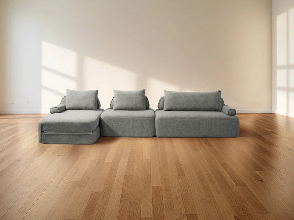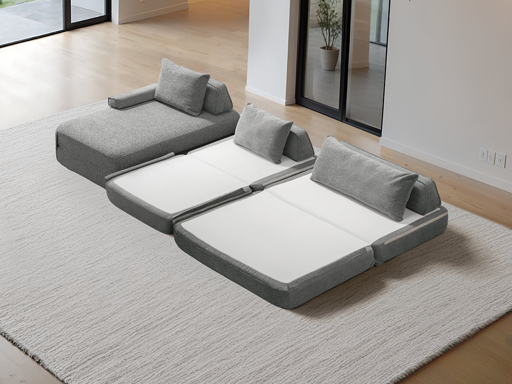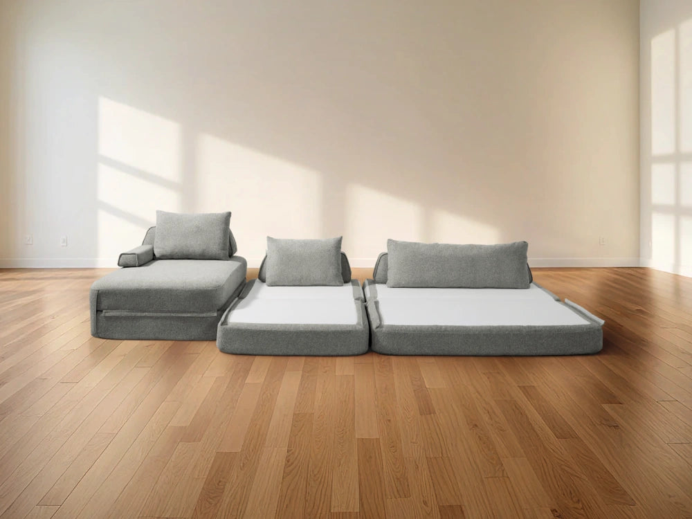 Cushie Modular Sofa Bed transforms from a stylish seat to a cozy bed in seconds—just flip and snooze. Unlike traditional sleeper sofas with noisy metal frames and complex pull-outs, Cushie keeps it simple and silent.
