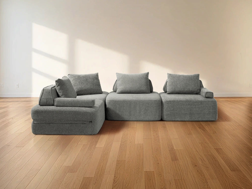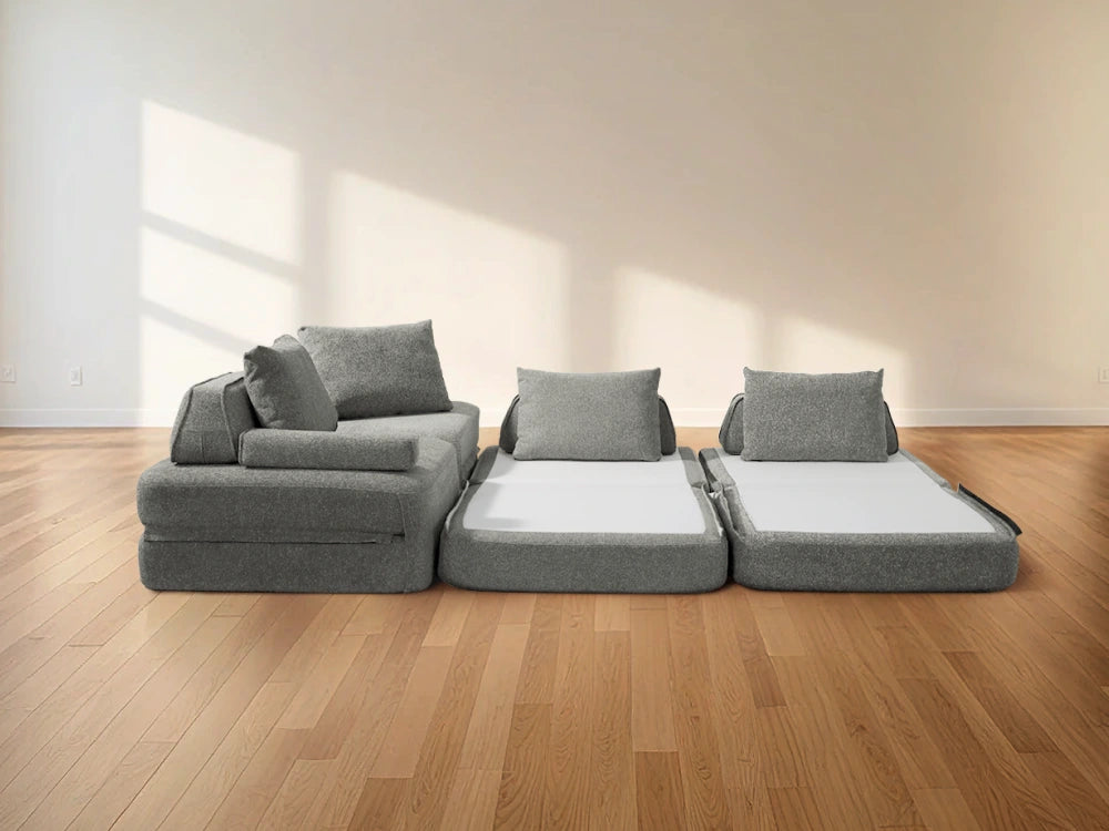 Cushie Modular Sofa Bed transforms from a stylish seat to a cozy bed in seconds—just flip and snooze. Unlike traditional sleeper sofas with noisy metal frames and complex pull-outs, Cushie keeps it simple and silent.