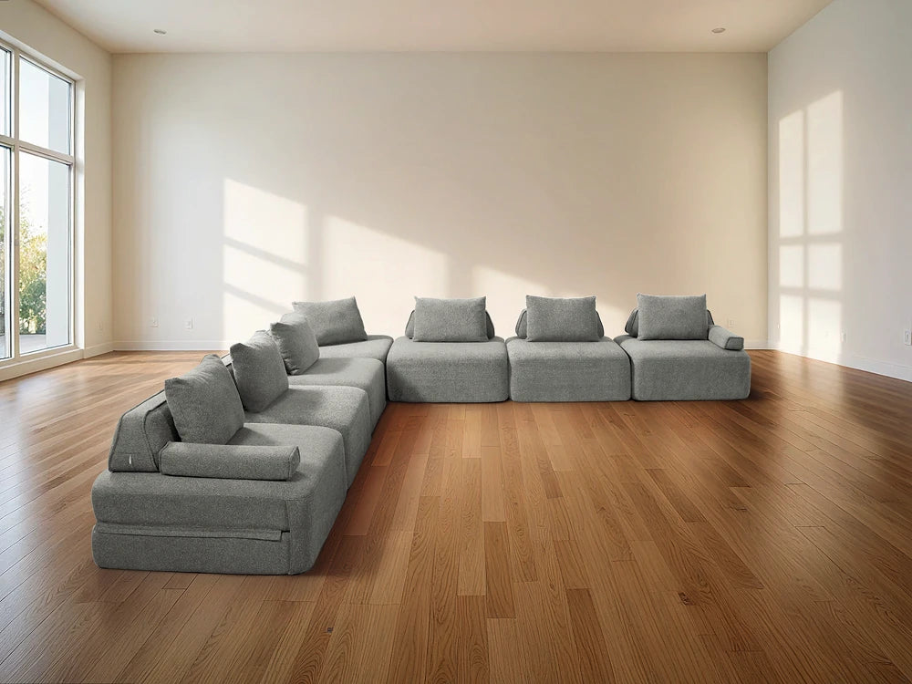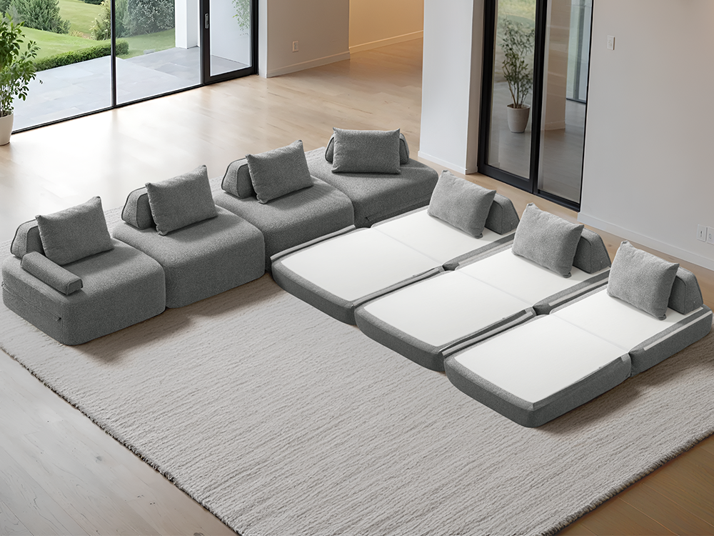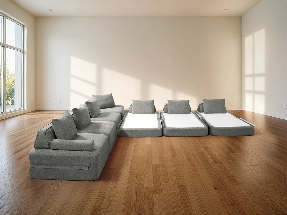 Cushie Modular Sofa Bed transforms from a stylish seat to a cozy bed in seconds—just flip and snooze. Unlike traditional sleeper sofas with noisy metal frames and complex pull-outs, Cushie keeps it simple and silent.
