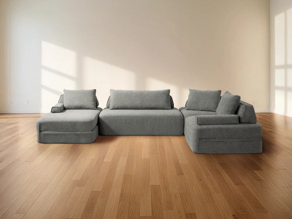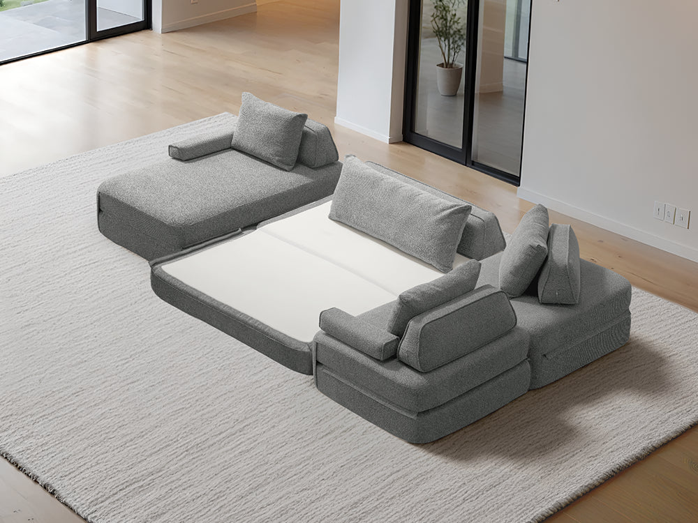 Cushie Modular Sofa Bed transforms from a stylish seat to a cozy bed in seconds—just flip and snooze. Unlike traditional sleeper sofas with noisy metal frames and complex pull-outs, Cushie keeps it simple and silent.