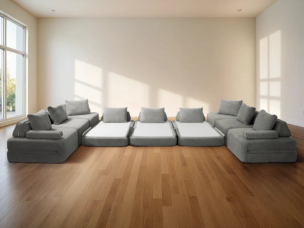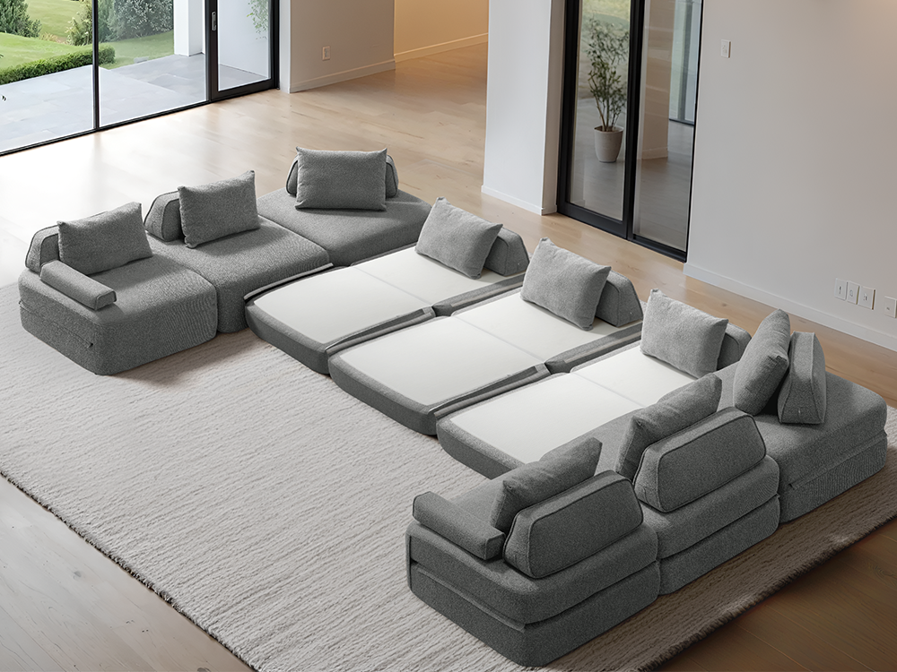 Cushie Modular Sofa Bed transforms from a stylish seat to a cozy bed in seconds—just flip and snooze. Unlike traditional sleeper sofas with noisy metal frames and complex pull-outs, Cushie keeps it simple and silent.