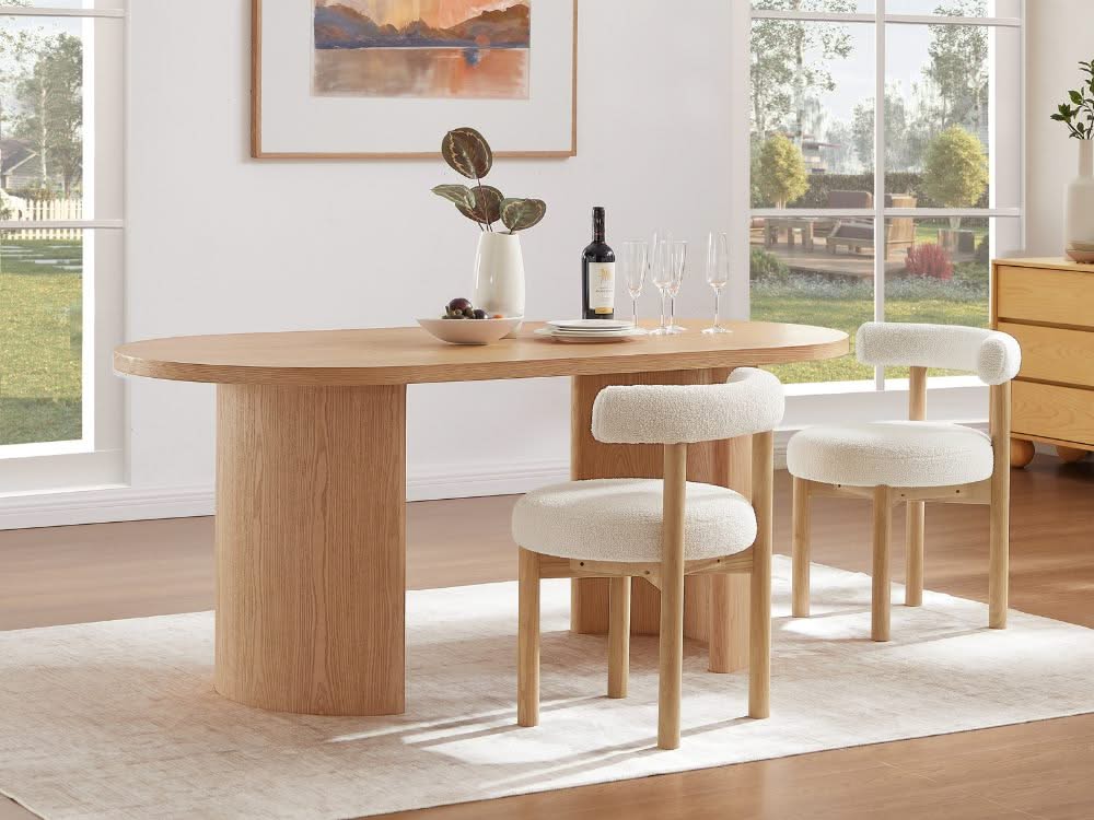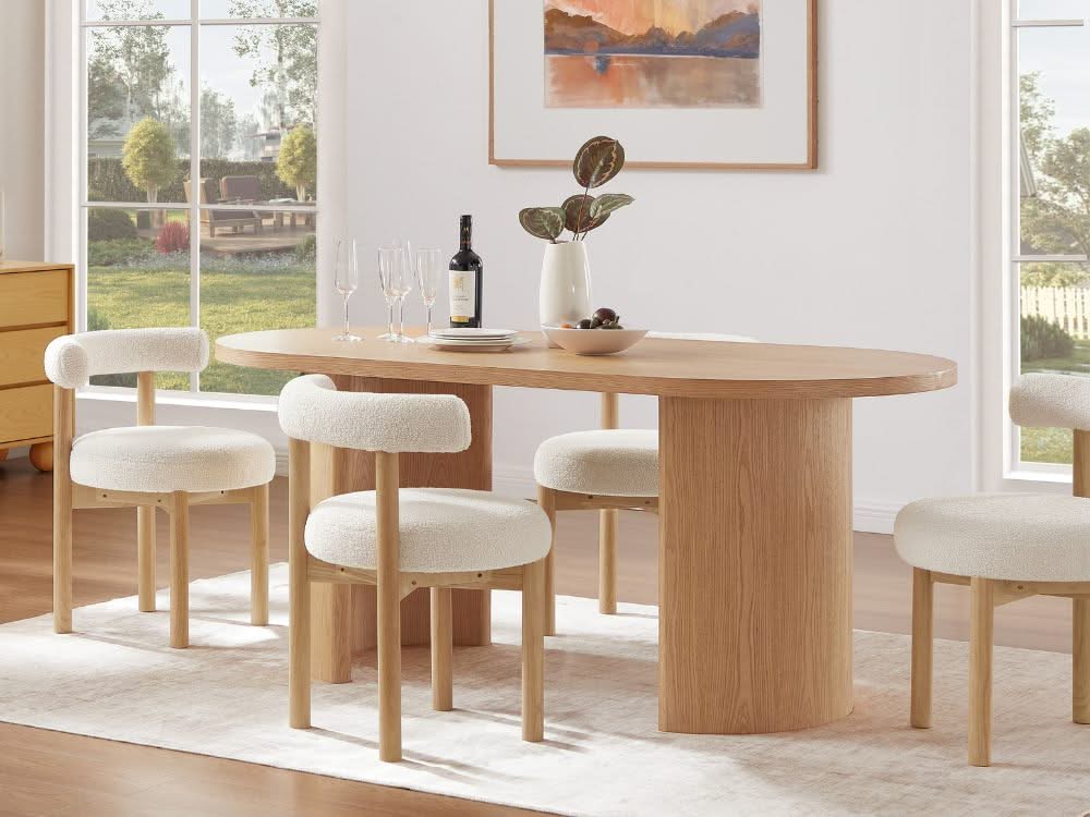 The Hudson dining table's oval shape and concave slab legs add a trendy design statement without overpowering the rest of your decor.