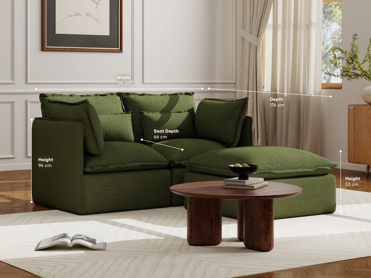 I originally got the 4 seater, I’ve since added two more seats and 2 ottomans. I have 2 toddlers and a dog (and a tradie) AND the white version and I am super impressed with the way it spot cleans. I’ve gotten pen, raspberry and chocolate off without having to wash it in the machine. The pillows get softer everytime we sit on it and it’s firm enough that it has decent support in the back. I hope they bring out more colours! Maybe boucle grey?? Or a chocolate! It has not disappointed me yet!