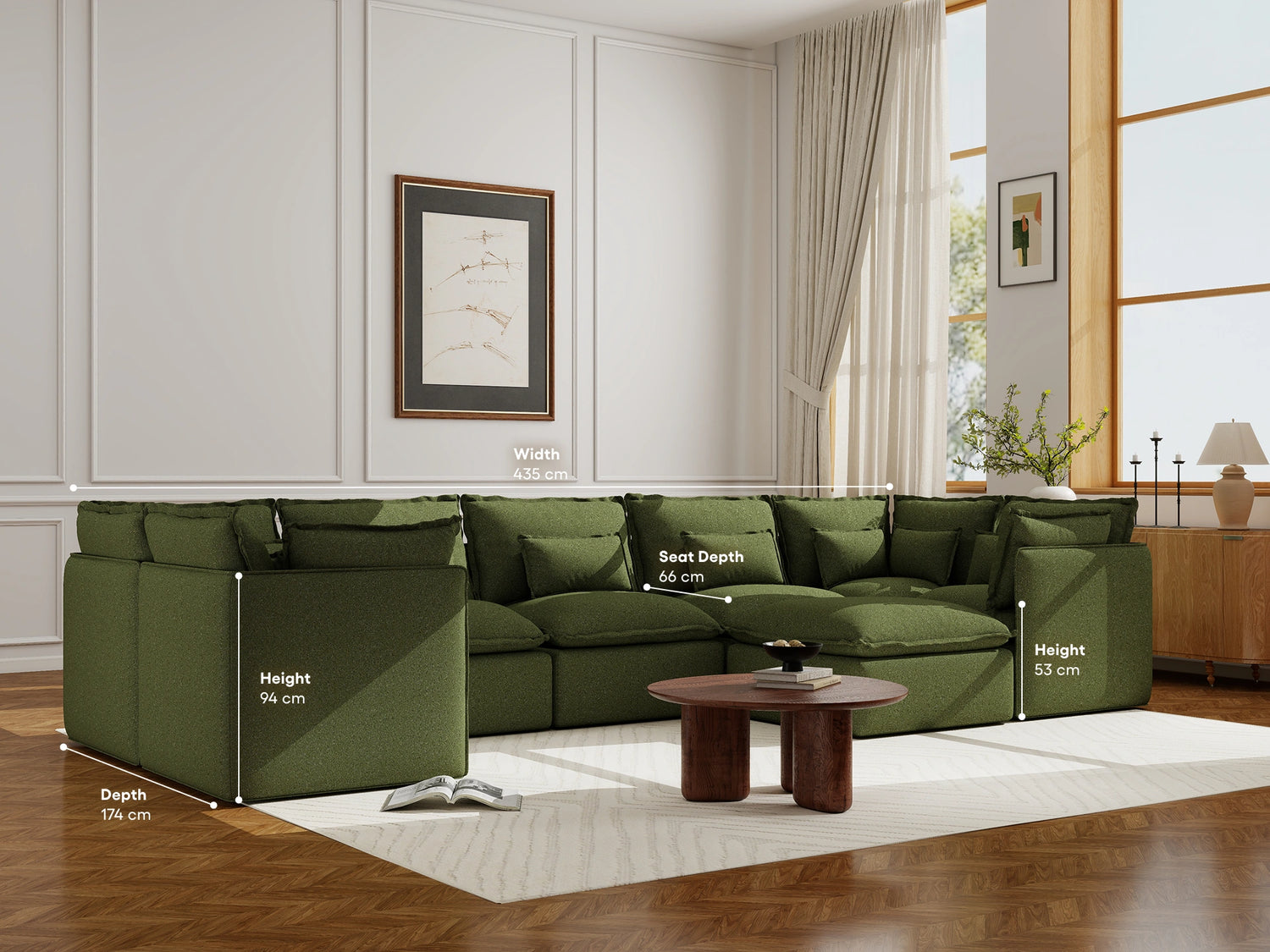 I originally got the 4 seater, I’ve since added two more seats and 2 ottomans. I have 2 toddlers and a dog (and a tradie) AND the white version and I am super impressed with the way it spot cleans. I’ve gotten pen, raspberry and chocolate off without having to wash it in the machine. The pillows get softer everytime we sit on it and it’s firm enough that it has decent support in the back. I hope they bring out more colours! Maybe boucle grey?? Or a chocolate! It has not disappointed me yet!