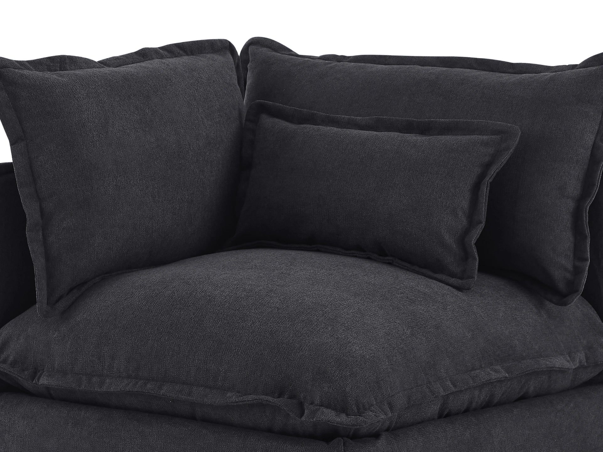 Back cushion and other pillows made from synthetic materials like polyester or polypropylene. These fibers are engineered to mimic the softness and comfort of natural materials like down and feathers, making them an affordable and practical choice for sofas.