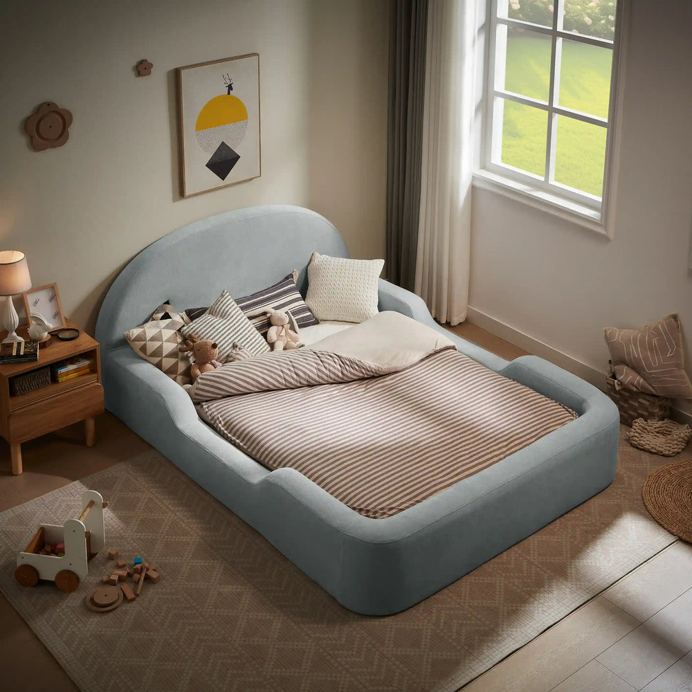 Built for Big Dreams & Little Accidents. Meet the bed that understands real life with real kids. Designed with soft, rounded edges and zero hard materials, the Little Lifely Bed keeps bumps, bruises, and bedtime stress at bay. Its low-to-the-ground design makes it perfect for toddlers learning independence — without compromising on safety.