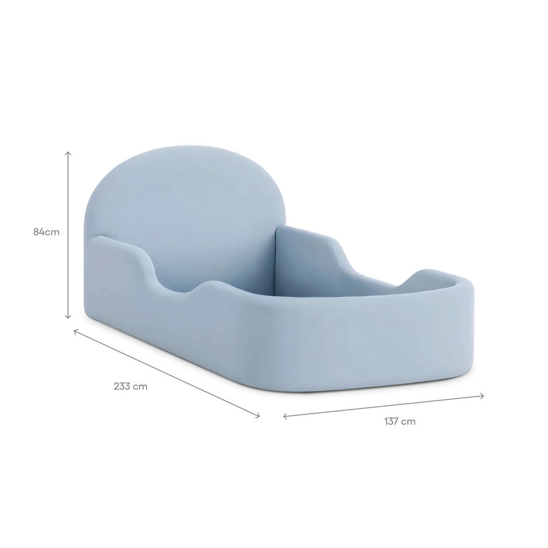Built for Big Dreams & Little Accidents. Meet the bed that understands real life with real kids. Designed with soft, rounded edges and zero hard materials, the Little Lifely King Single Bed (Baby Blue) keeps bumps, bruises, and bedtime stress at bay. Its low-to-the-ground design makes it perfect for toddlers learning independence — without compromising on safety.