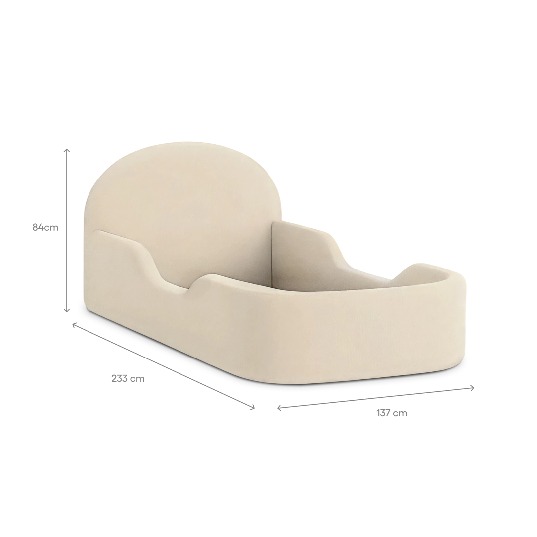 Built for Big Dreams & Little Accidents. Meet the bed that understands real life with real kids. Designed with soft, rounded edges and zero hard materials, the Little Lifely King Single Bed (Marshmallow) keeps bumps, bruises, and bedtime stress at bay. Its low-to-the-ground design makes it perfect for toddlers learning independence — without compromising on safety.