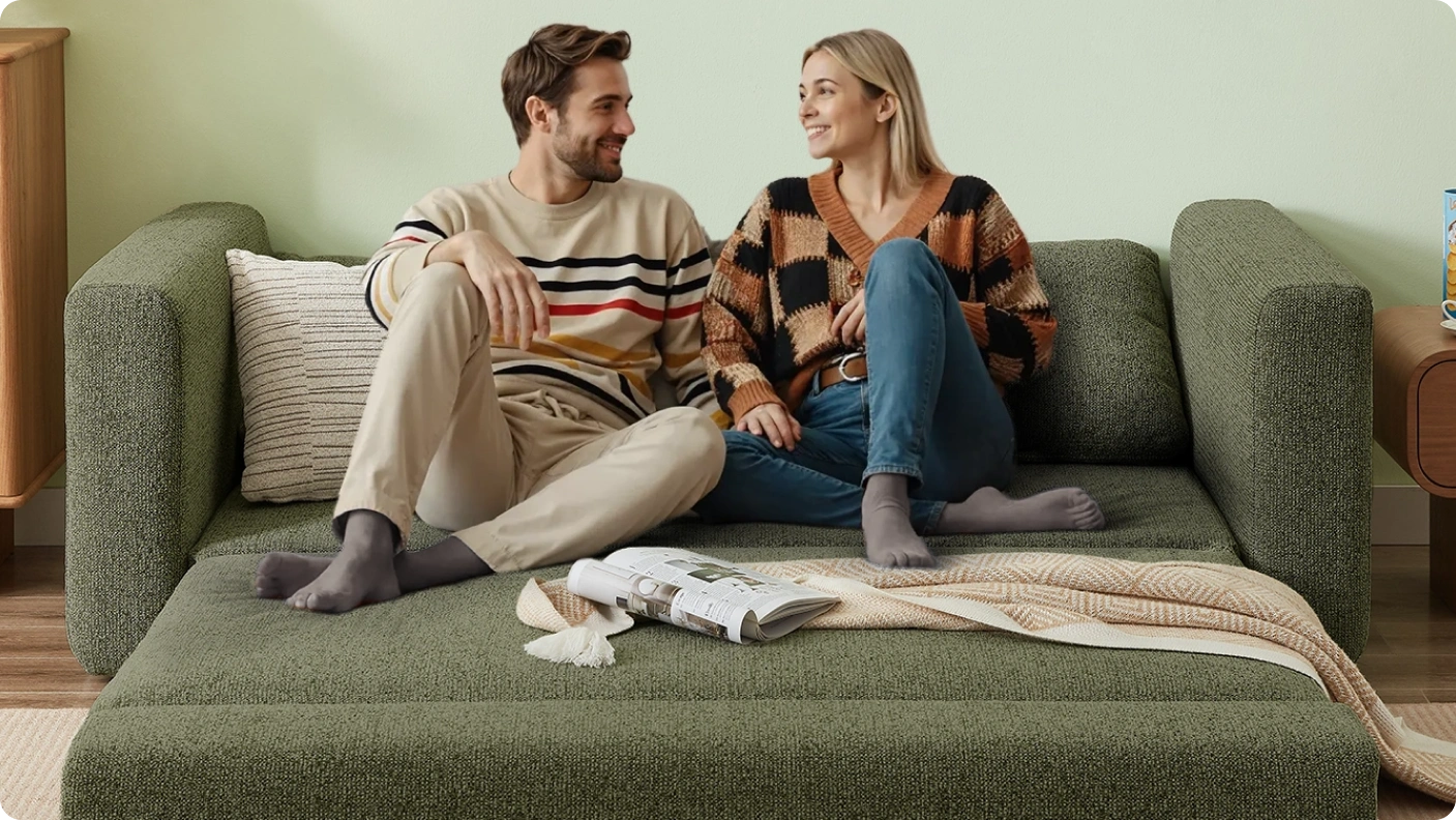 Introducing the Snuggle. A sleeper sofa that feels like a real mattress, featuring pocket springs for lasting comfort and support — all wrapped in stylish design. The no-fuss construction means no tools, no squeaks, no hassle. Designed for real life — Snuggle is soft yet supportive, waterproof, stain-resistant, scratch-proof, and made to last. Whether you’re hosting guests or reclaiming space for a home gym, yoga studio, or office, Snuggle is there to cuddle up on.