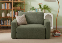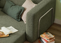 Snuggle's fully modular design lets you convert the armrests to a headboard, held in place by the chrome bars so you can recline in complete comfort.