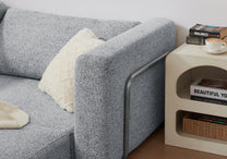 I appreciate the design, aesthetic, and functionality of the sleeper sofa. Materials seem high quality, and the cover seems robust, and the way the sofa pads are connected to form the mattress is clever. It’s comfortable and the arm rests are wide and flat. I like that there’s no sharp corners and it’s soft all over because I have a little one that likes to jump around.